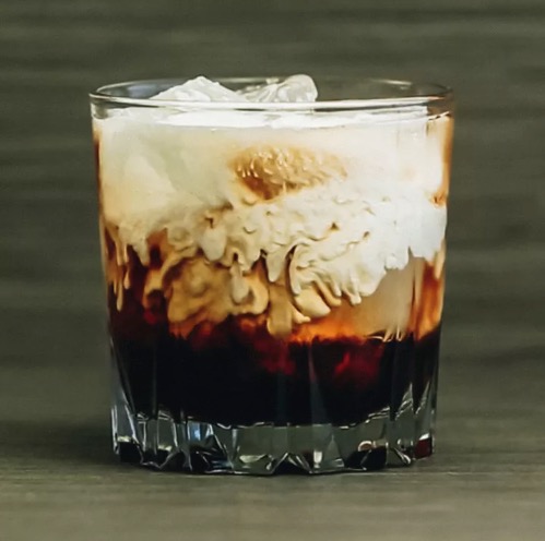 - Add the vodka and Kahlúa to a rocks glass filled with ice.
