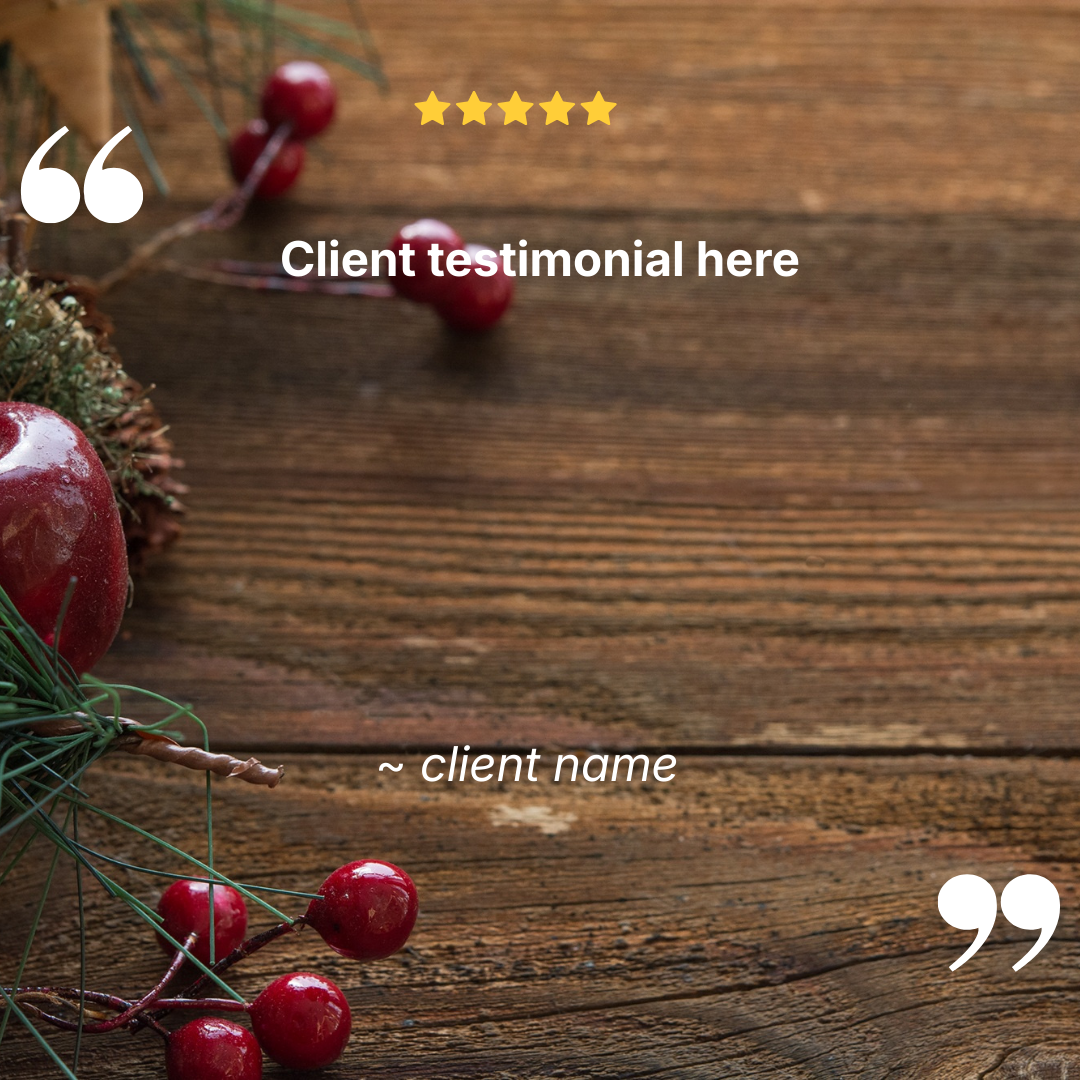 You may click on the Canva template to edit the testimonial in your FREE Canva account. We suggest copying and pasting the testimonial (review) and then add their name. If you don't have a name, you can say something like "Google Reviewer" or something to attribute the testimonial.